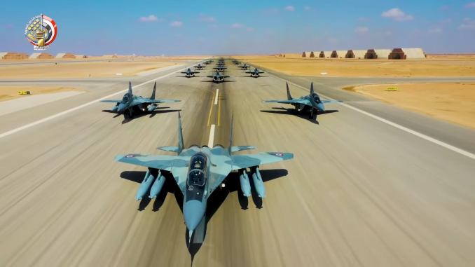 Sixteen Egyptian Air Force MiG-29M/M2 fulcrum jets staged “Elephant Walk to carry out massive “show of force” during the Qadir-2020 exercise.