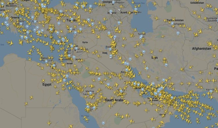 Data from flight-tracking website FlightRadar24 showed air traffic continuing over the region, but primarily from regional airlines or UAE and Qatari airlines.