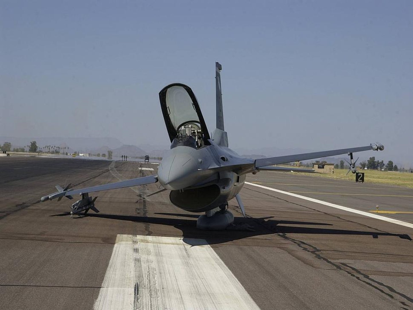 The F-16 with serial #J-198  made a belly landing on its ALQ pod and tanks.