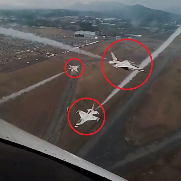But even if the separation distance between the F-16s does appear greater as viewed from the cockpit video camera of Thunderbird #2, Maj. Will Graef’s aircraft, there is still little margin for error in a maneuver when rates of closure are well above 1,000 MPH.