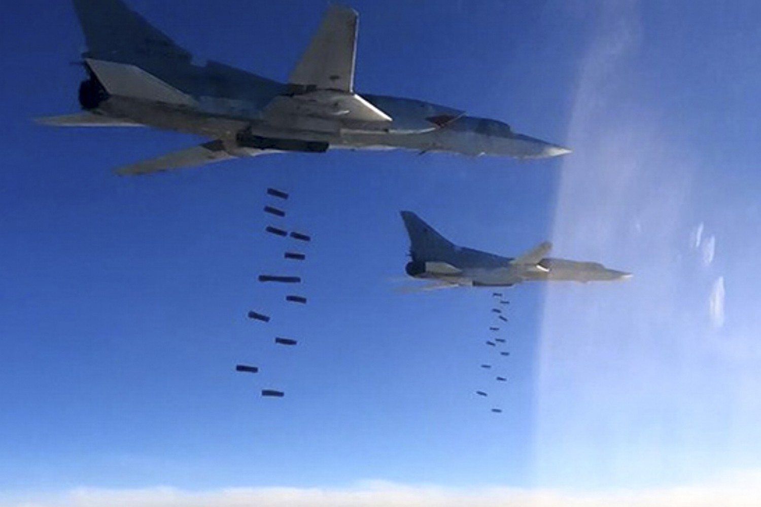 Russian Air Force Tupolev Tu-22M3 heavy bombers flying directly from Mozdok, Russia, pounded ISIS targets near Deir ez-Zor, Syria earlier today, Jan. 24.