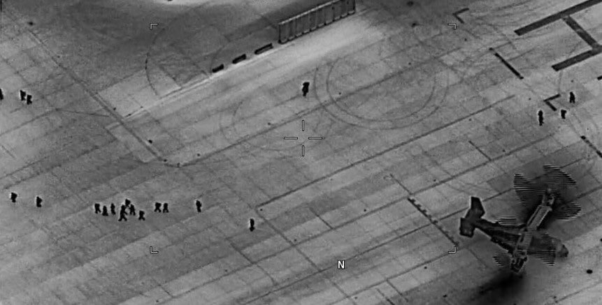 The second footage is a Forward-Looking Infrared video (FLIR) showing U.S. Marines landing in MV-22B Osprey aircraft at the U.S. Embassy. Approximately 100 Marines with the Special Purpose Marine Air-Grond Task Forces Crisis Response — Central Command were deployed to protect the U. S. Embassy in Baghdad, protesters stormed the embassy gates trying to get inside the perimeter.