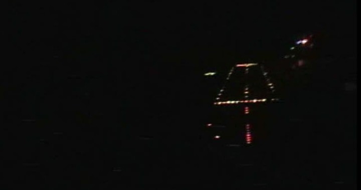 Comm was wired directly from my oxygen mask whilst flying the approach and landing aboard the USS Carl Vinson on the Indian Ocean. The dimly lit ship is barely a speck in the night at about three miles (time 1:22).