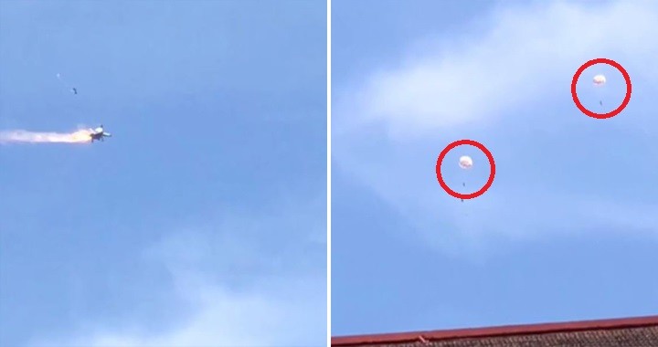 Last Saturday’s crash of an Indian Navy MiG-29KUB fighter in Goa was captured by several citizens on the ground, but none had apparently captured the actual ejection of the two pilots Capt M Sheokhand and Lt Cdr Deepak Yadav.