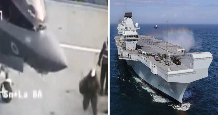 A leaked video clip recently surfaced on Daily Star apparently featuring the Royal Navy’s pilot of F-35B Lightning II stealth fighter jet falling at on his face, shortly after landing on new Royal Navy aircraft carrier HMS Queen Elizabeth.
