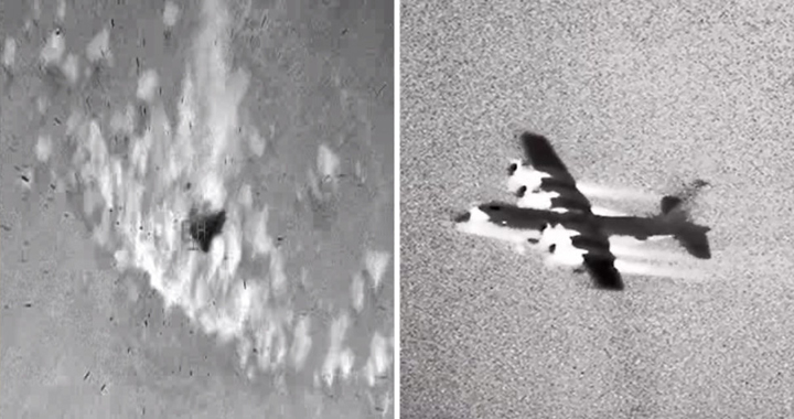 In a video posted by the Navy, the AC-130, assigned to Special Operations Command Central (SOCCENT), engages a target as the USS Monsoon (PC 4), deployed to the U.S. 5th Fleet area of operations, keeps watch.