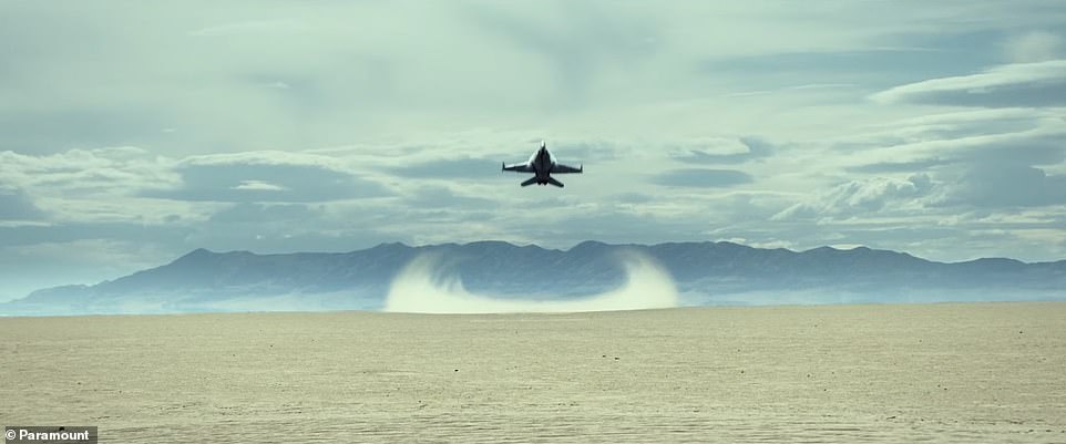 The trailer is pure nostalgia peppered with plane stunts. The trailer opens on a desert plain with a jet rising to the course over it.