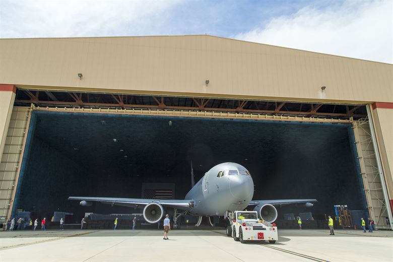 On May 5, 2017, a Boeing KC-46 Pegasus entered the largest Anechoic chamber in the world Benefield Anechoic Facility (BAF) at Edwards Air Force Base (AFB) for the first time to undergo Avionic Testing