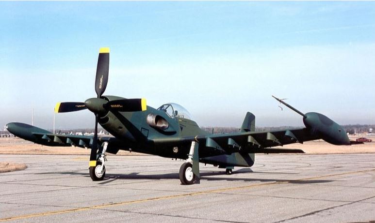 While fast combat jets are sexier, the idea of a propeller-driven aircraft for COIN work makes sense: their slower speed allows them to loiter over the jungle to provide air support or spot guerrillas. Prop jobs are also cheaper and require less maintenance.