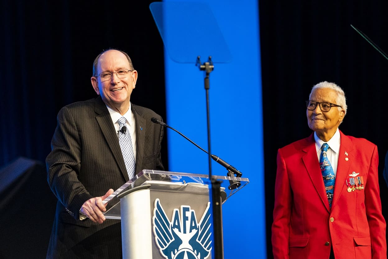 One of the last surviving Tuskegee Airmen, retired Col. Charles McGee, was on stage at the 2019 Air Force Association’s Air, Space and Cyber Conference in Maryland on Monday as the T-7A Red Hawk was unveiled. McGee, 99, flew more than 400 combat missions in WWII, Korea and Vietnam.