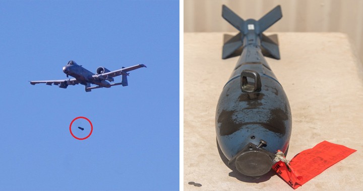Thankfully, the bombs were BDU-33s, small simulation non-explosive training munitions that do not create an explosion.