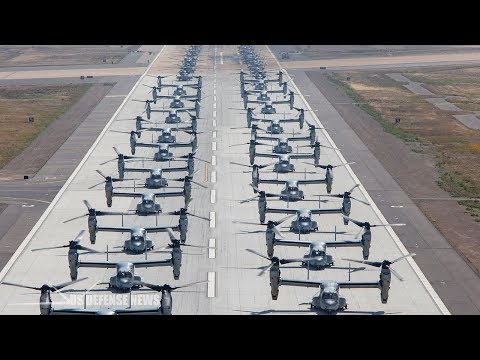 The Marine Corps carried out a huge ‘elephant walk’ exercise with its MV-22B Osprey tilt-rotor aircraft and CH-53E Super Stallion helicopters in California earlier this month.