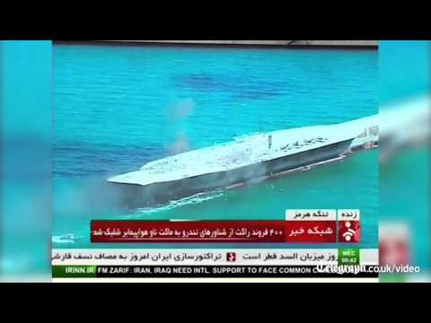 State TV showed footage of missiles fired from the coast and the fast boats striking the mock aircraft carrier.