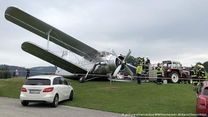 According to Austrian daily Kronen Zeitung, firefighters arrived shortly after the incident to pump the 1,500 liters of gasoline from the damaged plane. All four people on board were unhurt.