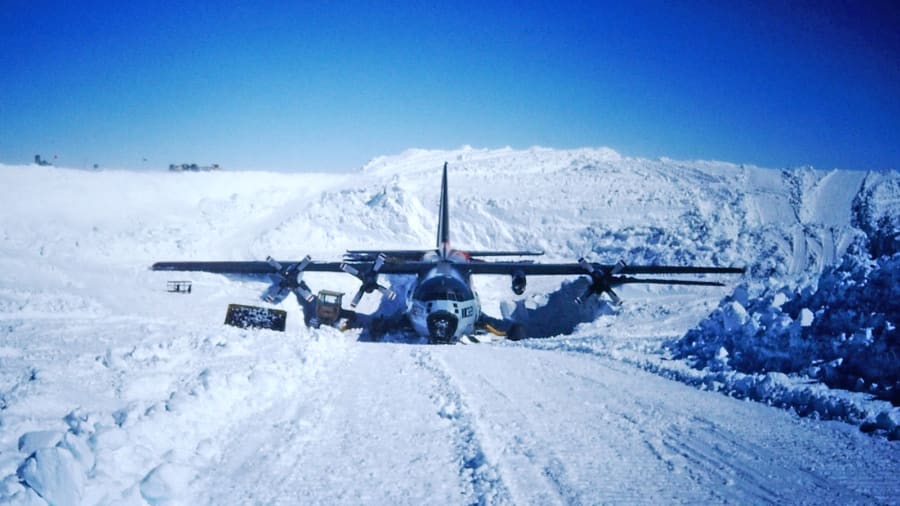 On December 4, 1971 C-130 Hercules cargo aircraft, call sign Juliet Delta 321, experienced a malfunction in the rockets used to assist in takeoff and was forced to crash-land on the ice, which caused the collapse of the main landing gear. No injuries were reported, but a salvage operation was deemed too complex and costly and the aircraft was abandoned at the spot (not before it was stripped of all flight instruments, engine gauges, radios and navigational equipment).