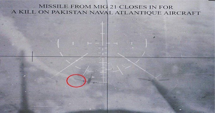 In this gun camera image, we can see the MiG’s R-60 air-to-air missile heading towards the port turboprop engine of the doomed ‘Atlantique’ (highlighted). The incident referred to as the “Atlantique incident”, is considered the single largest combat loss suffered by the Pakistani Navy since the 1971 Indo-Pak War.