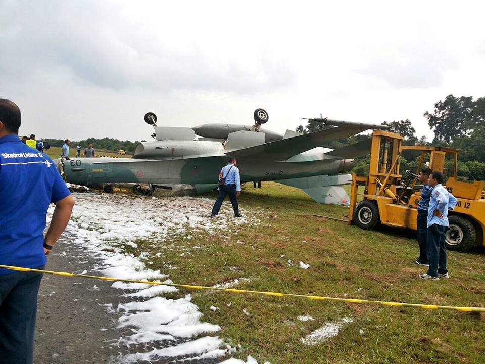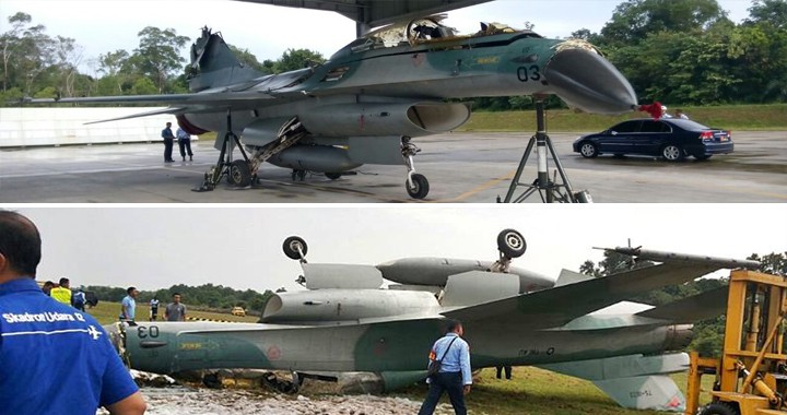In the Below photo, you can see F-16B block 15 #TS-1603 from 3 SKU was seen at Roesmin Nurjadin AFB on March 14th, 2017 after it skidded off the runway after a braking malfunction.