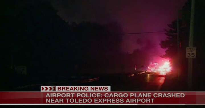 There are reports of a cargo plane that has crashed near Toledo Express Airport. It hit a truck and burst into flames.