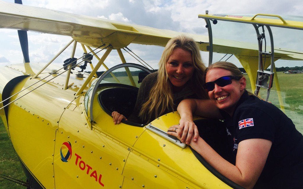 Mrs Collett, who became the British advanced national champion in 2016, taught Carol Vorderman how to do a loop-the-loop in the same model of plane two years ago.