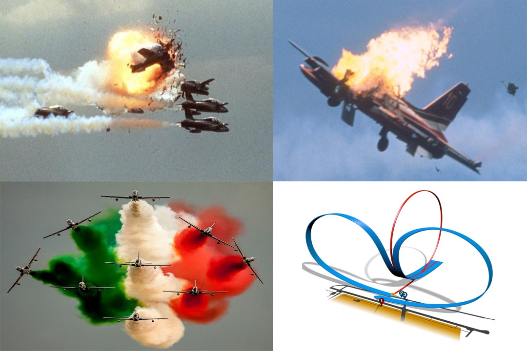 on 28 August 1988 during the Flugtag 1988 airshow at the US Ramstein Air Base near the city of Kaiserslautern, West Germany The Aermacchi MB-339 Aircraft of the Italian Air Force display team Frecce Tricolori collided during their Aerobatics display.