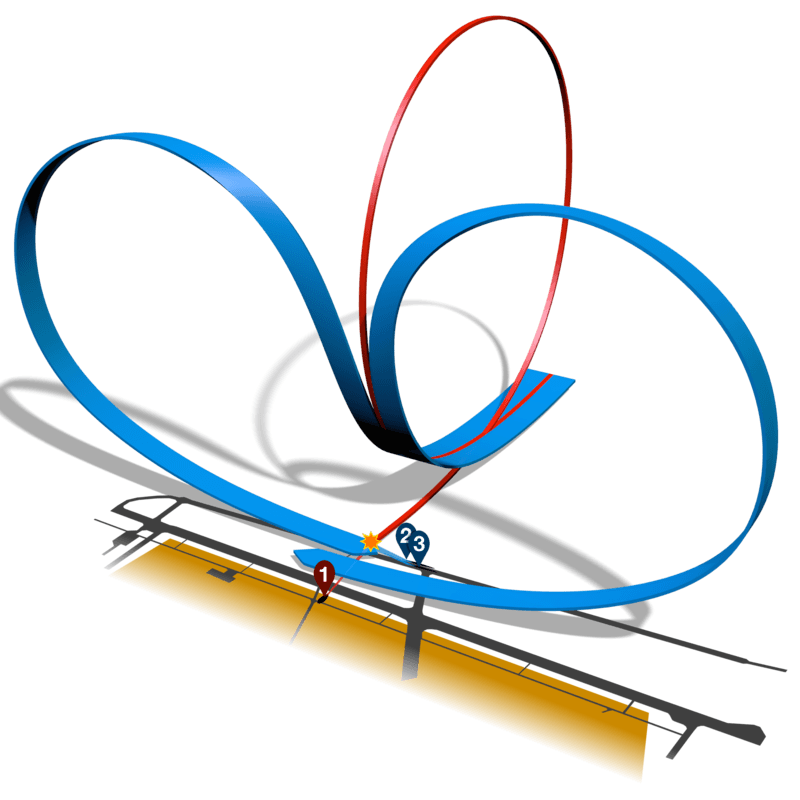 The piercing aircraft crashed onto the runway and consequently, both the fuselage and resulting fireball of aviation fuel tumbled into the spectator area, hitting the crowd and coming to rest against a refrigerated trailer being used to dispense ice cream to the various vendor booths in the area.