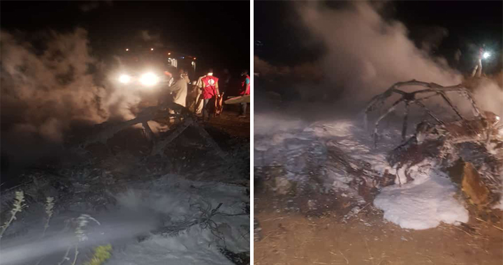 A source at el-Geneina airport, from which the plane took off, said there were about 20 people on board, including three crew members, and all had been killed.
