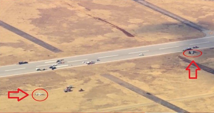 Live video feed from the KOCO 5 News helicopter showed a second T-38 Talon II stopped on its landing gear with both canopies open.