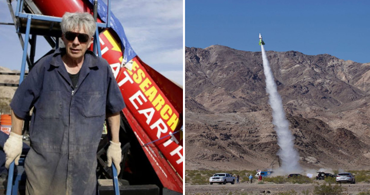 Hughes launched himself inside the steam-powered rocket in hopes that he might sail high enough into the atmosphere to prove that the Earth is flat. He was 64.