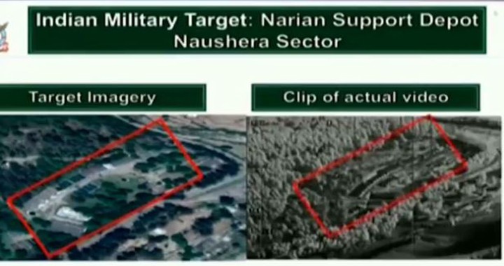 In its presentation, PAF released “actual footage” of one of the Pakistani bombs being dropped outside the Indian Army’s Narian Ammunition Depot.