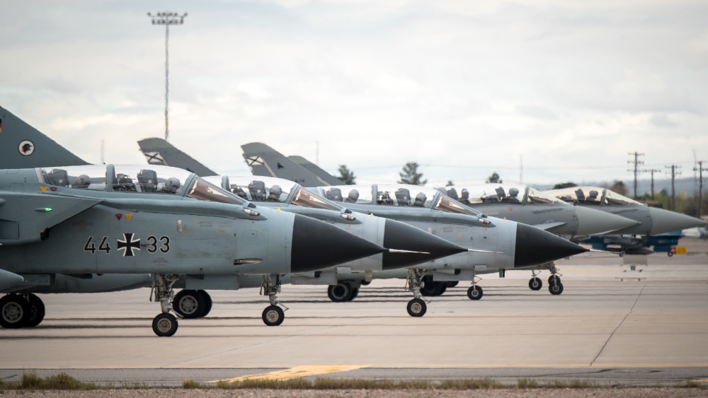 German Tornados and Spanish Eurofighters prepare to take off at Nellis Air Force Base, Nevada, during Red Flag 20-2, March 10, 2020. (U.S. Air Force photo by Staff Sgt. Philip Bryant)