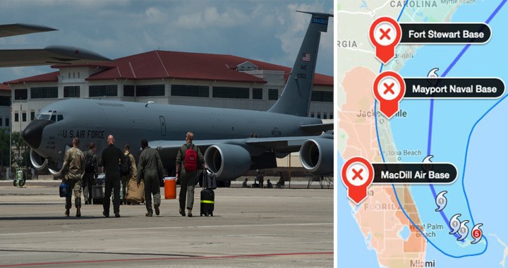 As the military evacuates or battens down its facilities across the threatened region, it will have far less air traffic to deal with as commercial airlines and airports continue to shut down or reroute operations due to the storm.