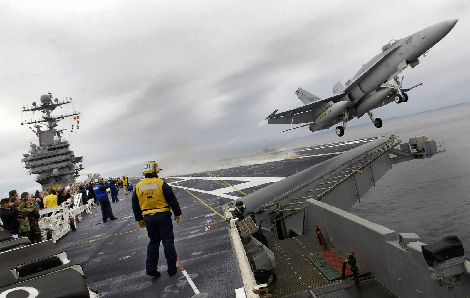 As well as the aircraft carrier fleet, the U.S. Navy has nine amphibious assault ships used primarily for helicopters, although these also carry up to 20 vertical or short take-off and landing (V/STOL) fighter jets and are similar in size to medium-sized fleet carriers.