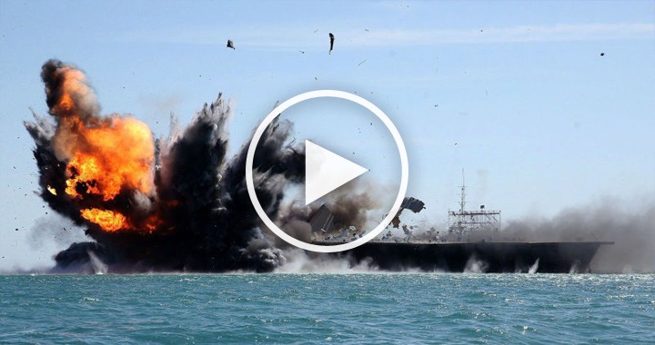 Related link: Video of Iran destroying a mock US aircraft carrier in naval drills