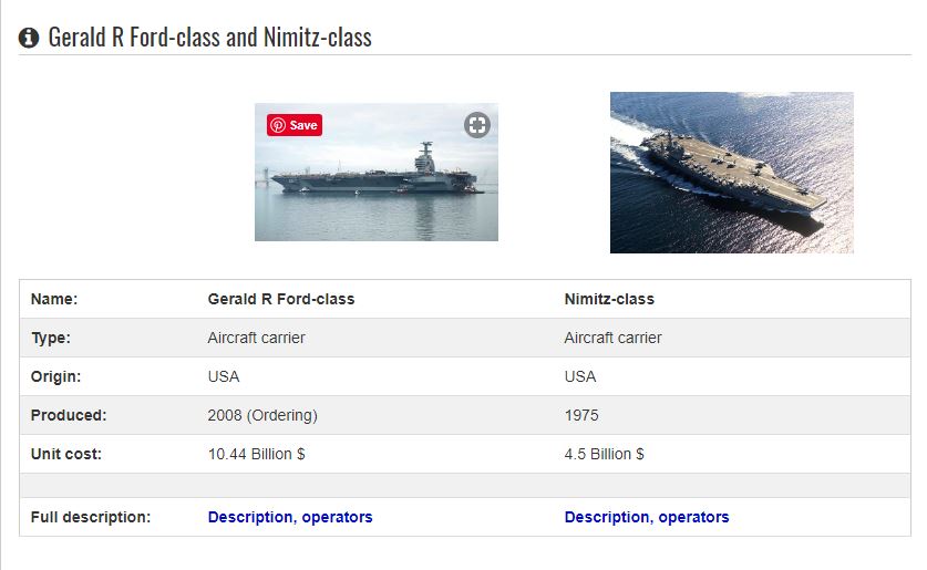 Here is a comparison of Nimitz Class Aircraft Carrier vs Gerald R Ford Class Aircraft Carrier