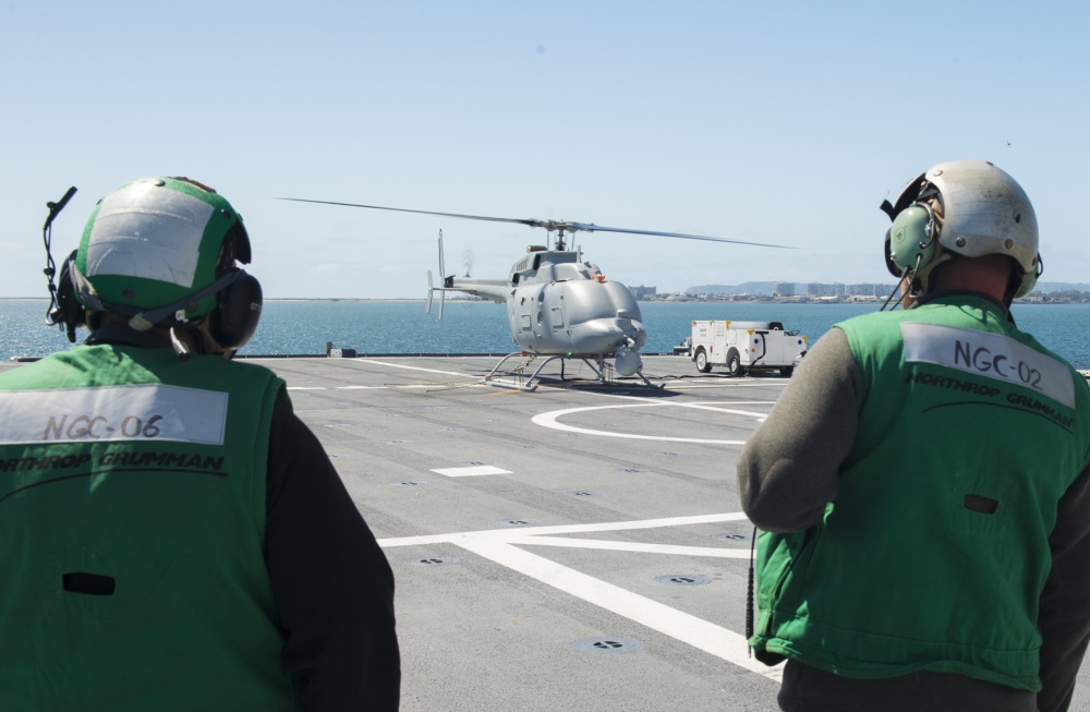 The MQ-8B Fire Scout has also demonstrated the ability to operate concurrently with other manned aircraft while operating at sea.