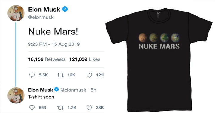 This time Elon musk is suggesting another idea with his tweet on Friday that there is enough CO2 on mars inside the soil after the recent NASA study that there is not so much CO2 on mars to think about the initiation of the greenhouse effect. He also tweeted “nuke mars” with his 28 billion followers, and then he tweeted “t=shirt soon.”