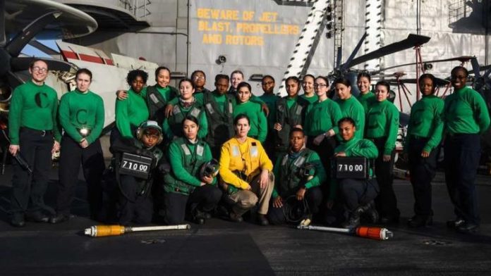 “I’m extremely proud of this team. This started at the deck plate level, not the officers,” she said. “They wanted to do this for themselves and take this unique opportunity to launch aircraft with an all-female launch crew, which doesn’t happen too often.”